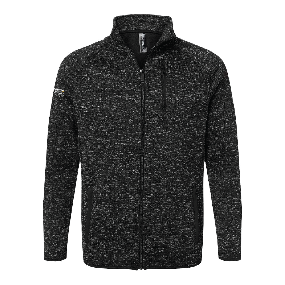 Warm, mobile, and built for function. This full-zip fleece jacket features a sweater-knit face, raglan sleeves, zippered chest and side pockets, and piped cuffs. Embroidered Florida Canyon Mining logo on the right sleeve adds a professional touch.
